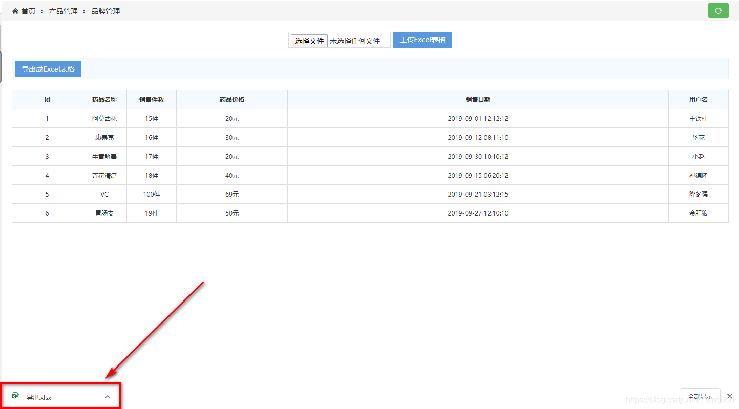 2.点击“导出成Excel表格”,将页面上的数据,导出成Excel表格。
