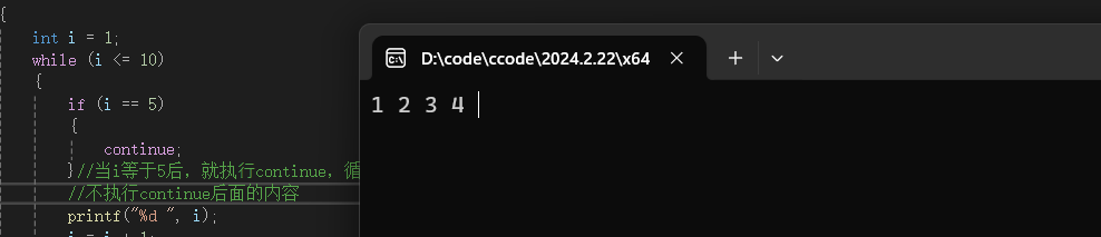 } //这⾥continue跳过了后边的打印,来到了i++的部分