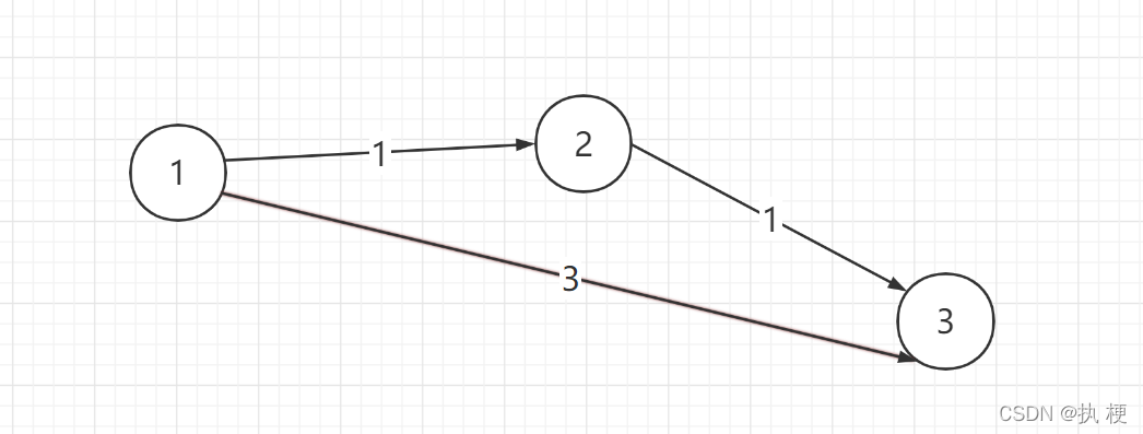 比如在如图,边数限制为1的情况下,从1到3的最短路径应该为3。初始的时候dist[]数组应该是被初始化为正无穷的。如果此时我们对1~2这边进行操作以后使得dist[2]=1以后,再松弛2~3这条边的时候,就会导致dist[3]变成了2,也就没有无法保证只有1条边了。