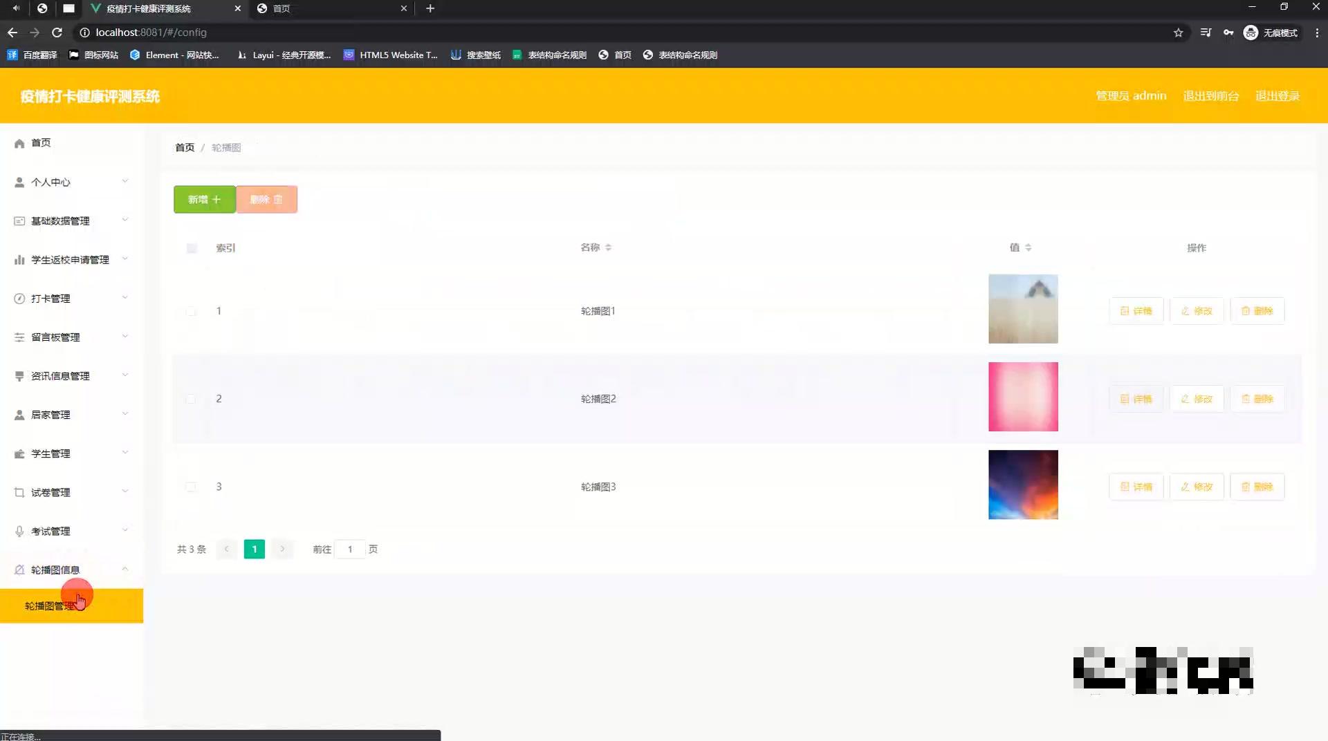 - 数据维护:管理学生信息、打卡记录、居家状态、留言板