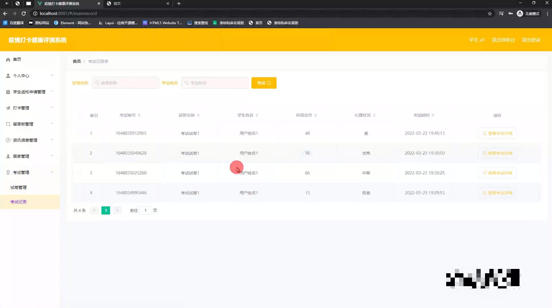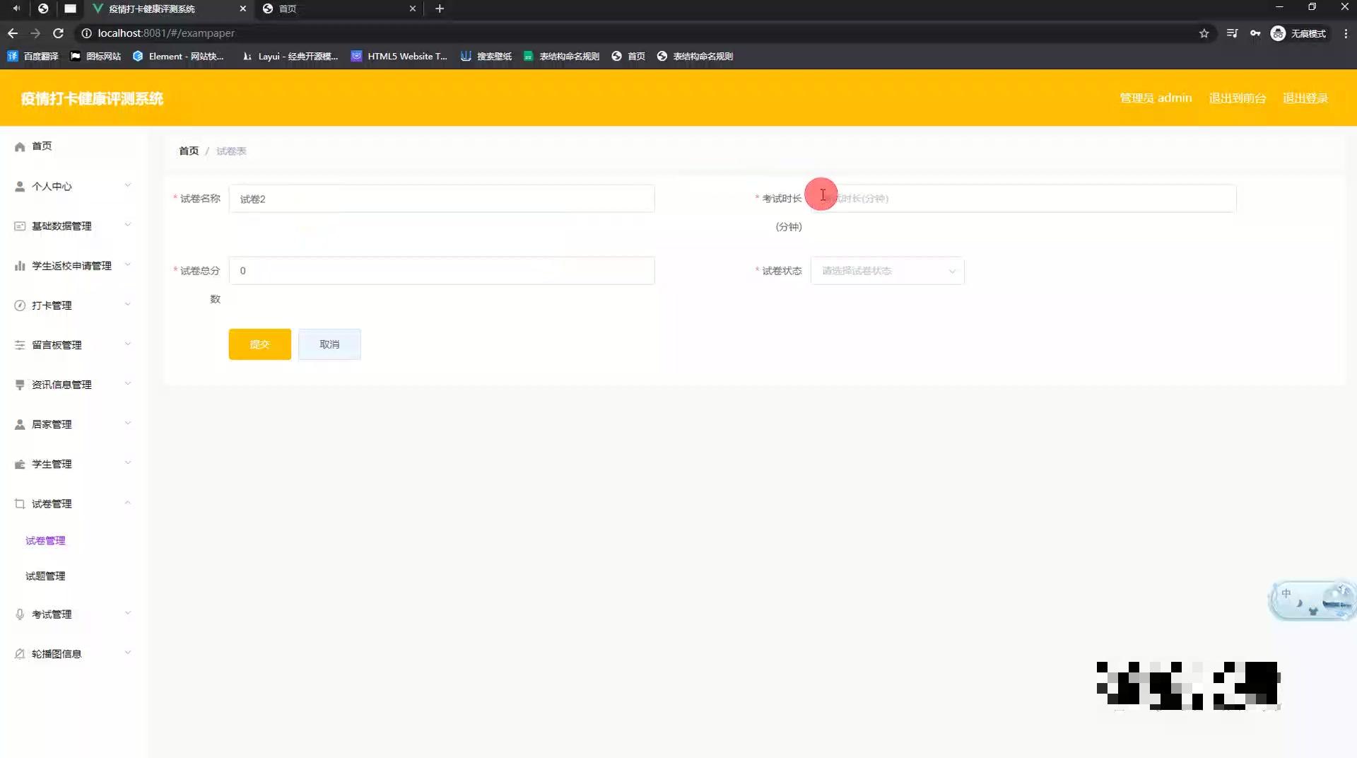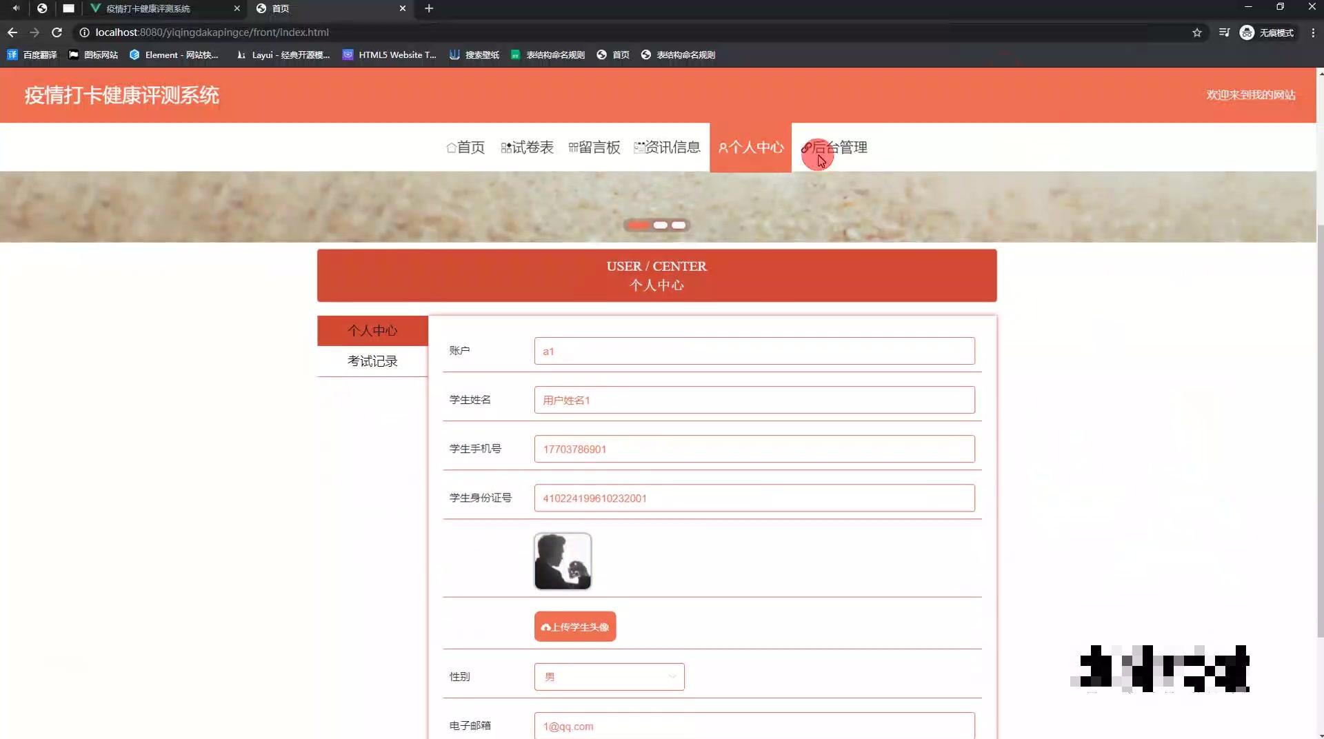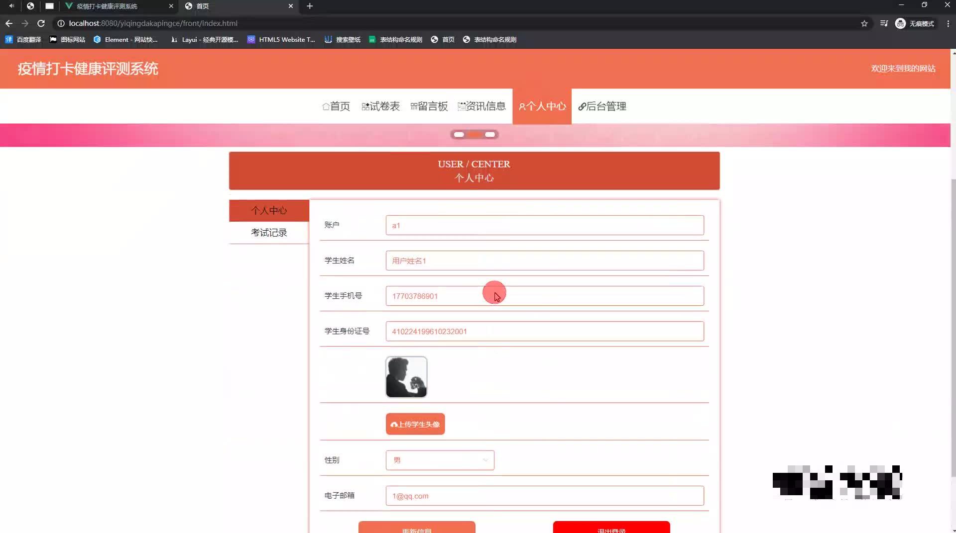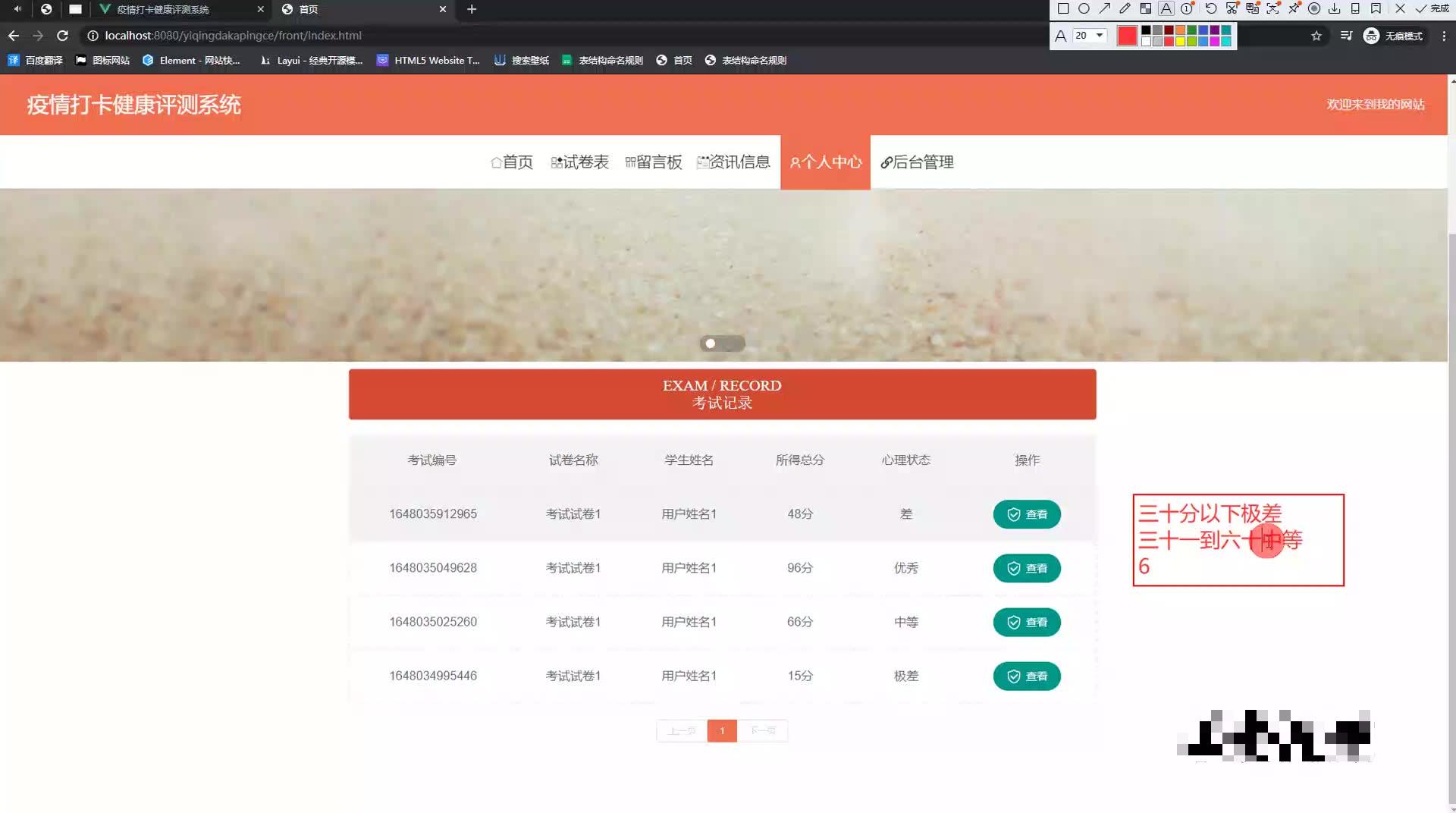 基于Java+SpringBoot+Vue+HTML5疫情打卡健康评测系统(源码+LW+调试文档+讲解等)/疫情打卡/健康评测/健康打卡系统/评测系统/疫情防控/健康管理/健康监测