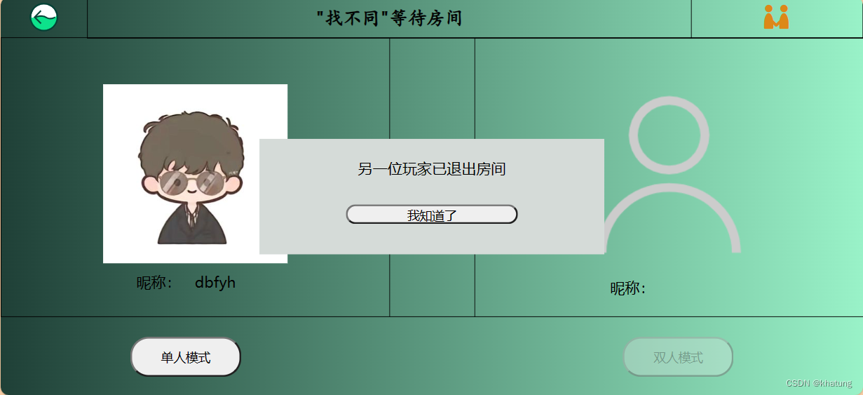 - 后端那边判断完成后会分给前端这边对方的数据包(也就是给房主的客户端返被邀请人的数据包,给被邀请人返房主的数据包)