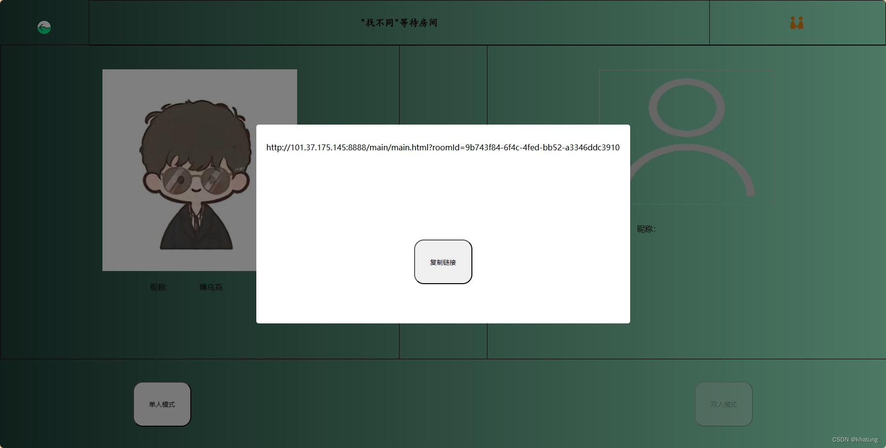 - 这个时候就发现两个客户端房间的页面上都有这两个玩家的信息了