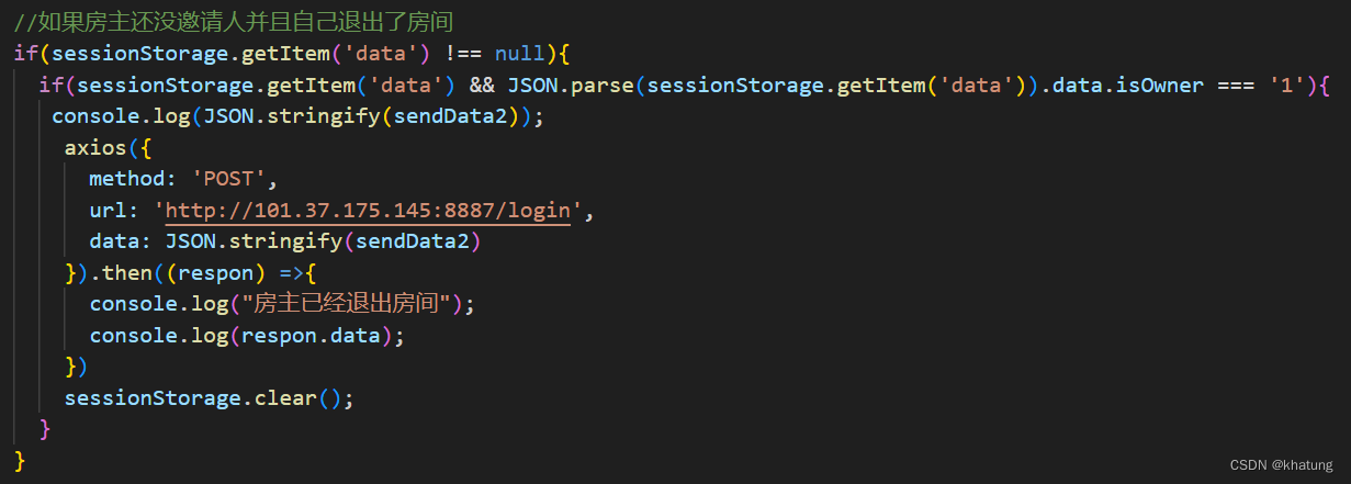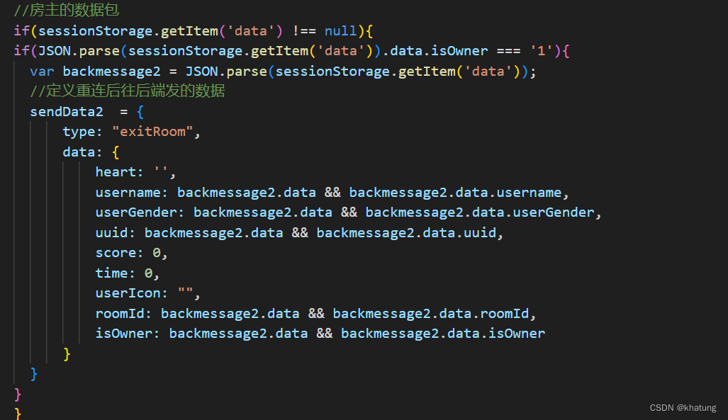 这个时候本地是只有房主的信息,判断后给后端传房主的数据包,让他知道房主退出房间了,后端那边进行销毁房间。此时前端这边应该把本地的数据进行清空。