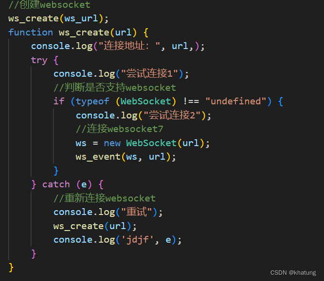 2、定义一个重新链接的函数,每隔两秒重新调用创建websocket的方法来重新连接