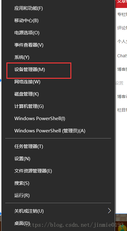 win10右键windows(电脑左下角),左键设备管理器