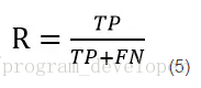 查全率(Recall),又叫召回率,缩写表示用R。查全率是针对我们原来的样本而言的,它表示的是样本中的正例有多少被预测正确。定义公式如5所示。