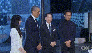 日本 ASIMO 机器人向奥巴马展示行走和现场踢球互动